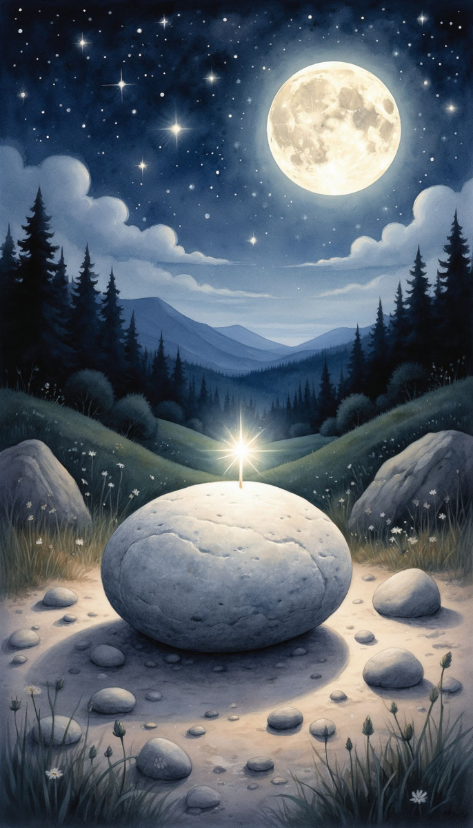 Но однажды ночь выдалась особенно тёмной и безлунной. В полной, густой темноте Камешек вдруг почувствовал лёгкое, едва уловимое тепло у себя в груди. Он замер. И тогда он совершил то, чего никогда не делал: он перестал смотреть на далёкие звёзды и попытался заглянуть внутрь себя.