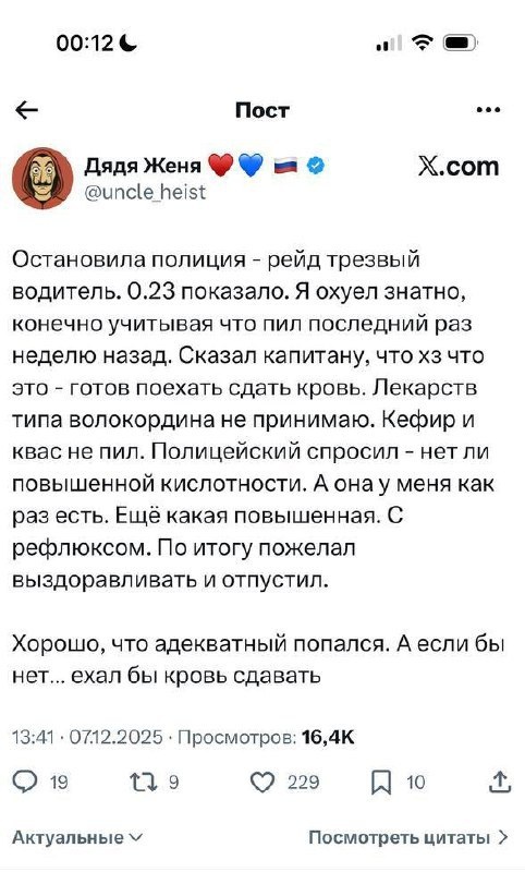 Водитель не понял, что его РАЗВОДИЛИ Продули его в китайский алкотестер с уже заранее нужными показателями.🗣 Конечно, вся процедура была нарушена: ни отстранения от управления, ни понятых/ видеорегистратора и тд. Если водитель ведется: «вчера пивка выпил» – его уже не отпустят, оформляют протоколы, продувают в настоящий поверенный алкотестер. Если водитель трезв и не ведется - его отпускают с ощущением, будто бы ему «простили» погрешность. Где вы видели, чтобы гаишники по доброте душевной отпускали водителей с 0.23 промилле (максимально допустимо 0.16) 🤩 #работа, #вакансия, #заработок, #деньги, #подработка, #работасейчаc, #водитель, #водителю, #работаводителем, #такси, #таксист, #работавтакси, #курьер, #работакурьером, #доставка, #доставкаеды, #ЯндексЕда, #DeliveryClub, #ЯндексТакси, #Ситимобил, #ЯндексРабота, #Таксиру, #Uber, #UberEats, #GetTaxi, #авто, #автомобиль, #работанаавто, #работанаавтомобиле,, #арендаавто, #такспарк, #ищуработу, #вакансии