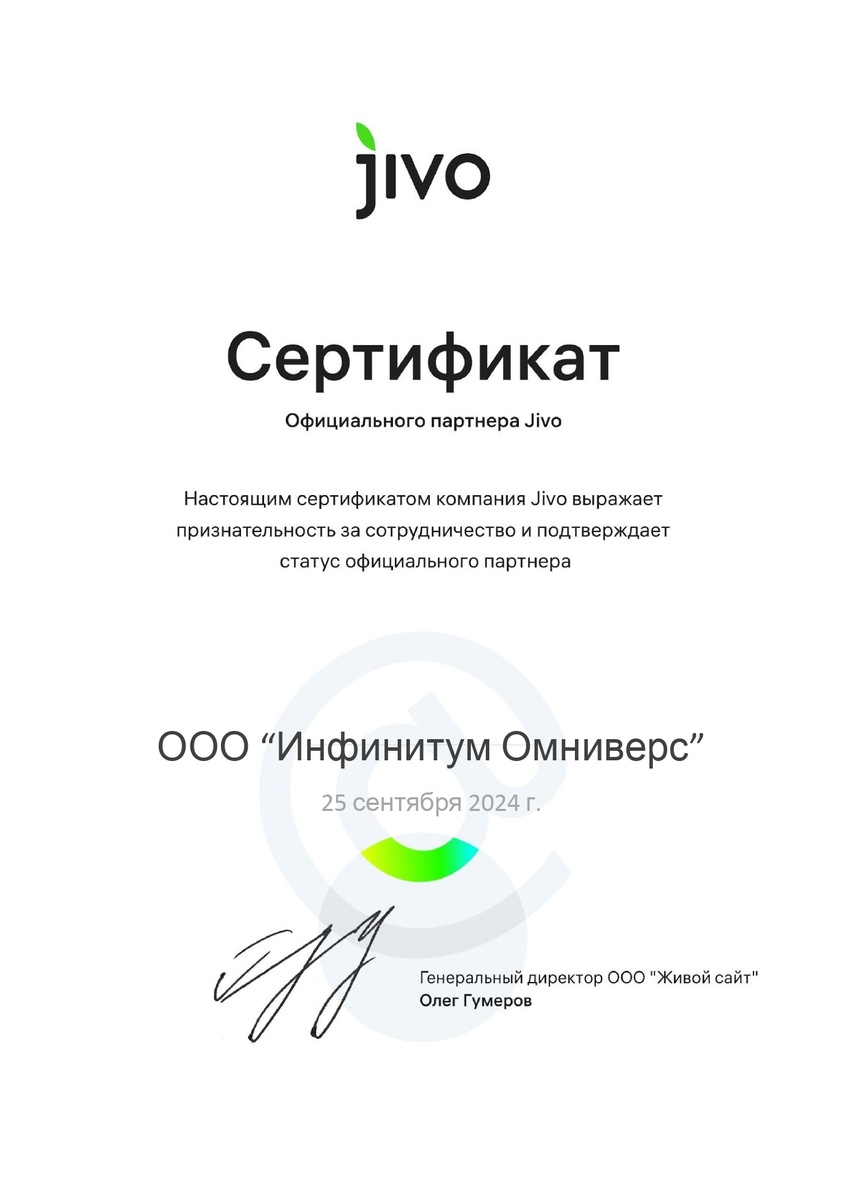 В «Инфинитум Омниверс» мы понимаем, что цифровизация — это не просто модный термин, а внедрение конкретных инструментов, которые дают измеримый результат. JivoChat — один из таких инструментов, который мы рекомендуем нашим клиентам для комплексного повышения эффективности бизнес-процессов.