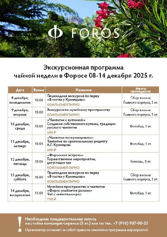 ☕️Расписание экскурсий с 8 по 14 декабря.