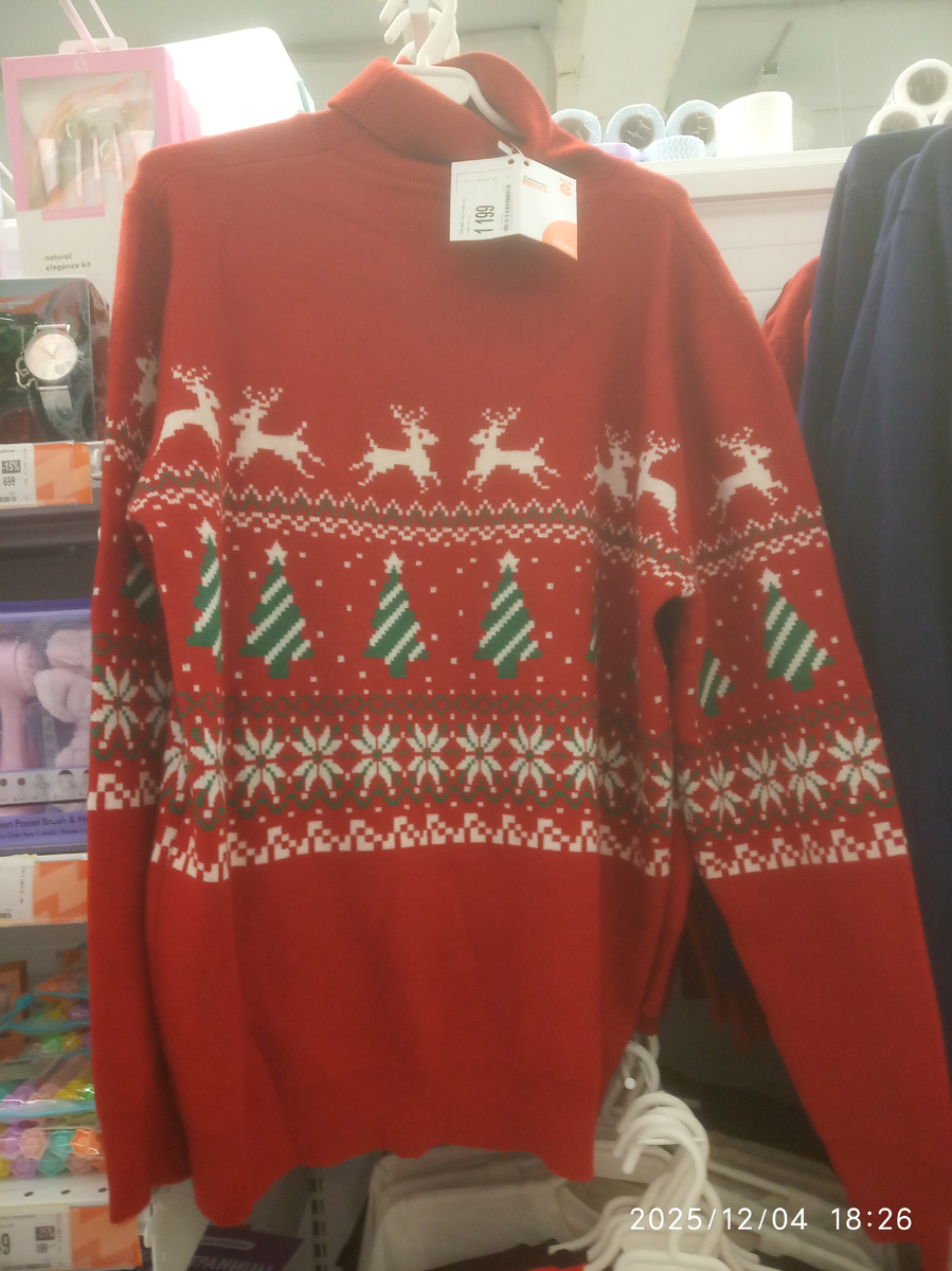 Всем привет! Сейчас я вам напишу о том, как мы гуляли, и немного о школе. Мы заходили в магазин "Ещё", и я там увидел новые новогодние свитера! Один - красный, другой - тёмно-синий. На первой фотографии у меня красный свитер с оленями, ёлками и снежинками. На следующей фотографии - тёмно-синий свитер, тоже с зимними картинками. На следующей фотографии - сразу оба свитера, выглядят нарядно! Дальше у меня идёт гладильная доска с Эйфелевой башней. Потом опять гладильная доска и сушилка для белья. Дальше мы зашли в магазин "Магнит", и я сфотографировал разные плакаты. На первой фотографии - адвент-календари в акции "Сезон подарков начинается". Дальше на плакате - всякие вкусности: мини-рулеты, шоколадки и т. д. На входе в магазин повесили красочные праздничные фигурки - Деда Мороза, Снегурочки и Лошадки. А внутри на объявлениях сделали небольшую мишуру. Теперь расскажу немного о моём школьном дне. Сегодня по окружающему миру писали памятку сбора грибов. Ещё на уроке мы делали небо