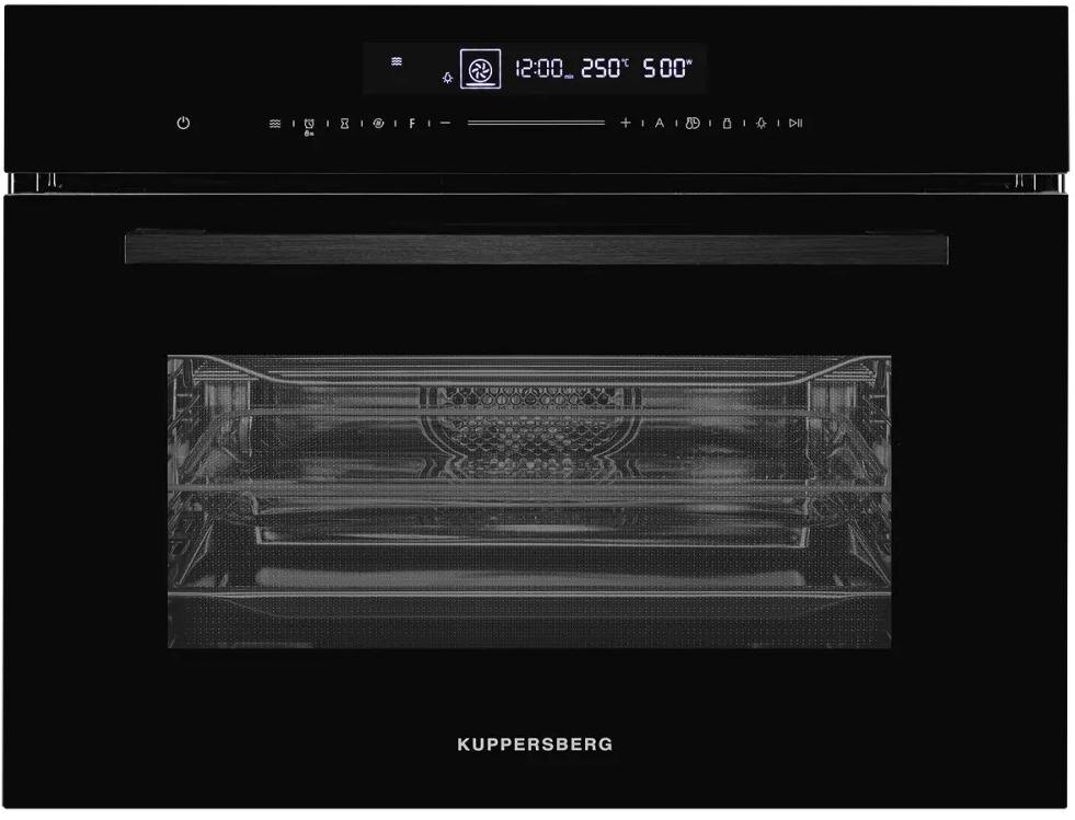 Kuppersberg KMW 694 — встраиваемый комбинированный прибор, который объединяет традиционный нагрев и микроволновой модуль. Такая конструкция позволяет использовать духовку как полноценный термический центр: разогревать, запекать, подрумянивать, готовить блюда по классическим рецептам и ускорять процесс за счёт СВЧ-нагрева. Модель рассчитана на пользователей, которым важно получить возможности двух приборов при одном посадочном месте. Камера и нагревательные элементы Объём рабочей камеры составляет около 44 литров — оптимальный размер для комбинированных моделей. Внутренние стенки покрыты устойчивой эмалью с гладкой структурой, которая не задерживает брызги и облегчает очистку. Нагрев организован несколькими элементами: верхний и нижний нагреватели формируют классический режим запекания; гриль используется для подрумянивания; СВЧ-модуль распределяет энергию в центре камеры и ускоряет прогрев блюда. Такая комбинация позволяет выбирать подходящую мощность для каждого рецепта — от деликатн