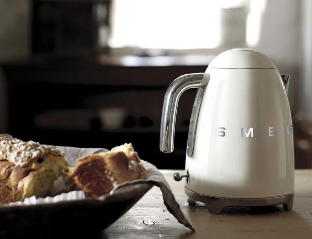Smeg KLF03WHEU — электрический чайник объёмом 1,7 литра с корпусом из нержавеющей стали и классическим встроенным нагревательным элементом. Модель создана для быстрого кипячения воды и рассчитана на длительное ежедневное использование. Корпус и материалы Корпус изготовлен из нержавеющей стали, снаружи покрыт стойким окрашенным слоем. Поверхность не выгорает и не деформируется при высокой температуре.