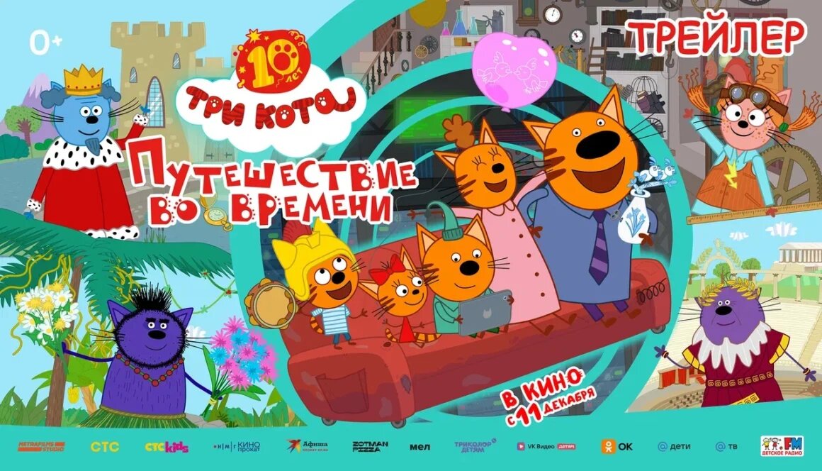 «Три Кота. Путешествие во времени» — юбилейный мультфильм 2025: премьера, сюжет и звёздные гости