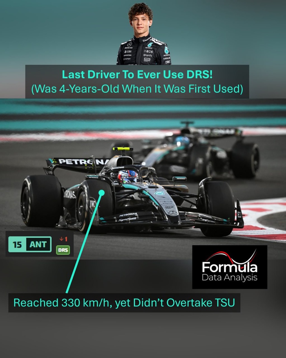 Кими Антонелли было всего 4 года, когда Дженсон Баттон в 2011-м впервые в истории нажал кнопку DRS. Вчера же именно он стал последним гонщиком, который когда-либо её использовал! Кими активировал DRS в последней зоне на последнем круге гонки, разогнавшись до 330 км/ч, но так и не смог пройти Цуноду. Прощай, DRS 👋
