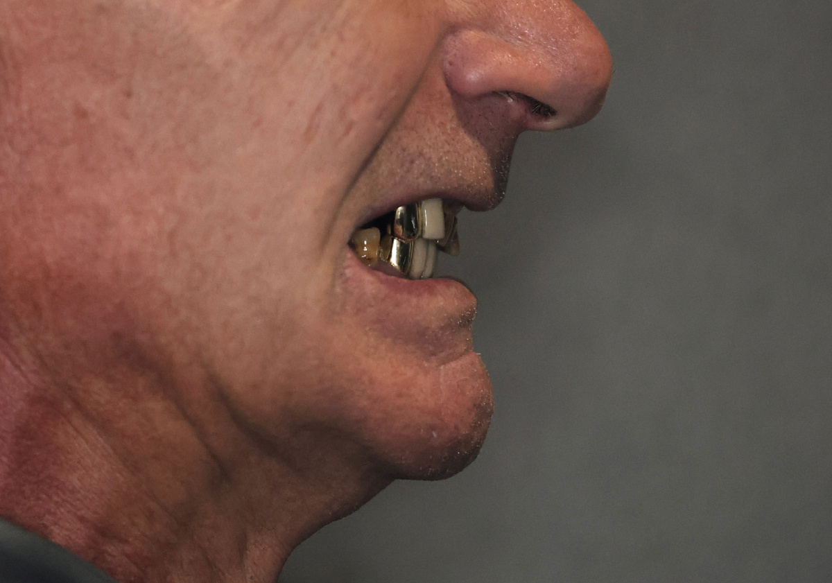 Решено было начать работу с челюстью нижней, а верх под наблюдение - бруксизм, адаптация нужна будет. Ну и, не смотря на неприглядный внешний вид и деструкцию кости, есть вероятность, что зубы на в/ч ещё побудут с человеком. Их вид его не смущает. И это хорошо.