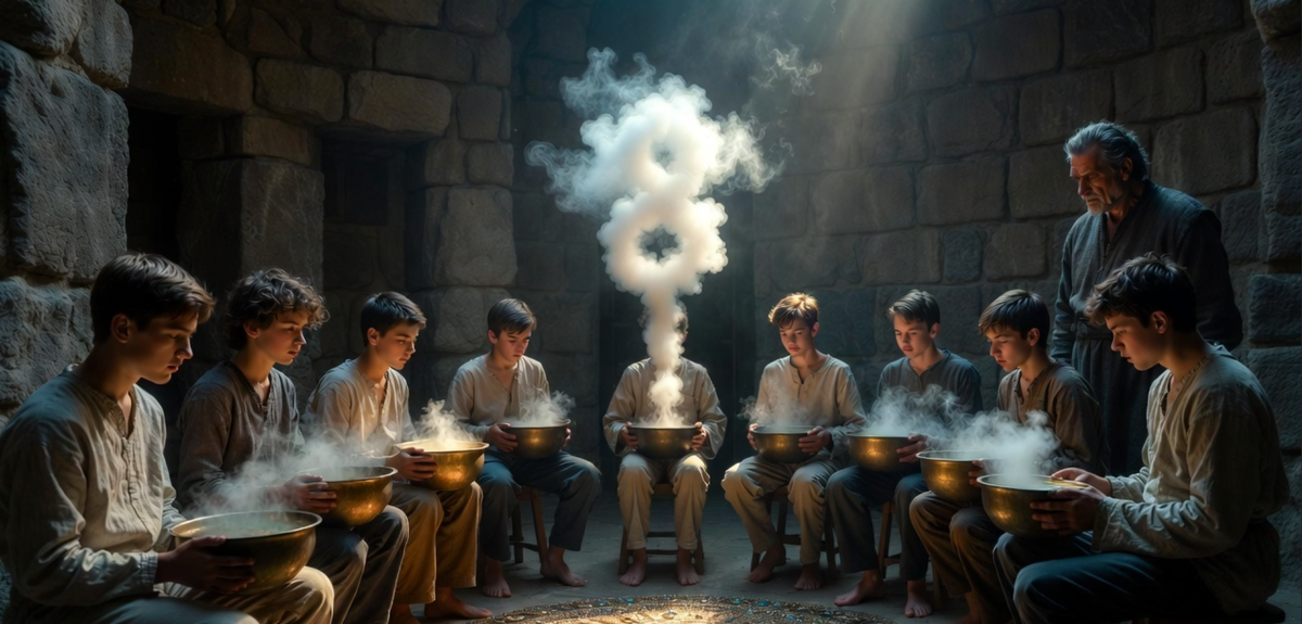 С этими словами он отпустил пар, и тот растаял. Ученики заерзали на местах. Задание казалось одновременно простым и невероятно сложным. Гордеев раздал каждому по небольшой металлической чаше с теплой водой.