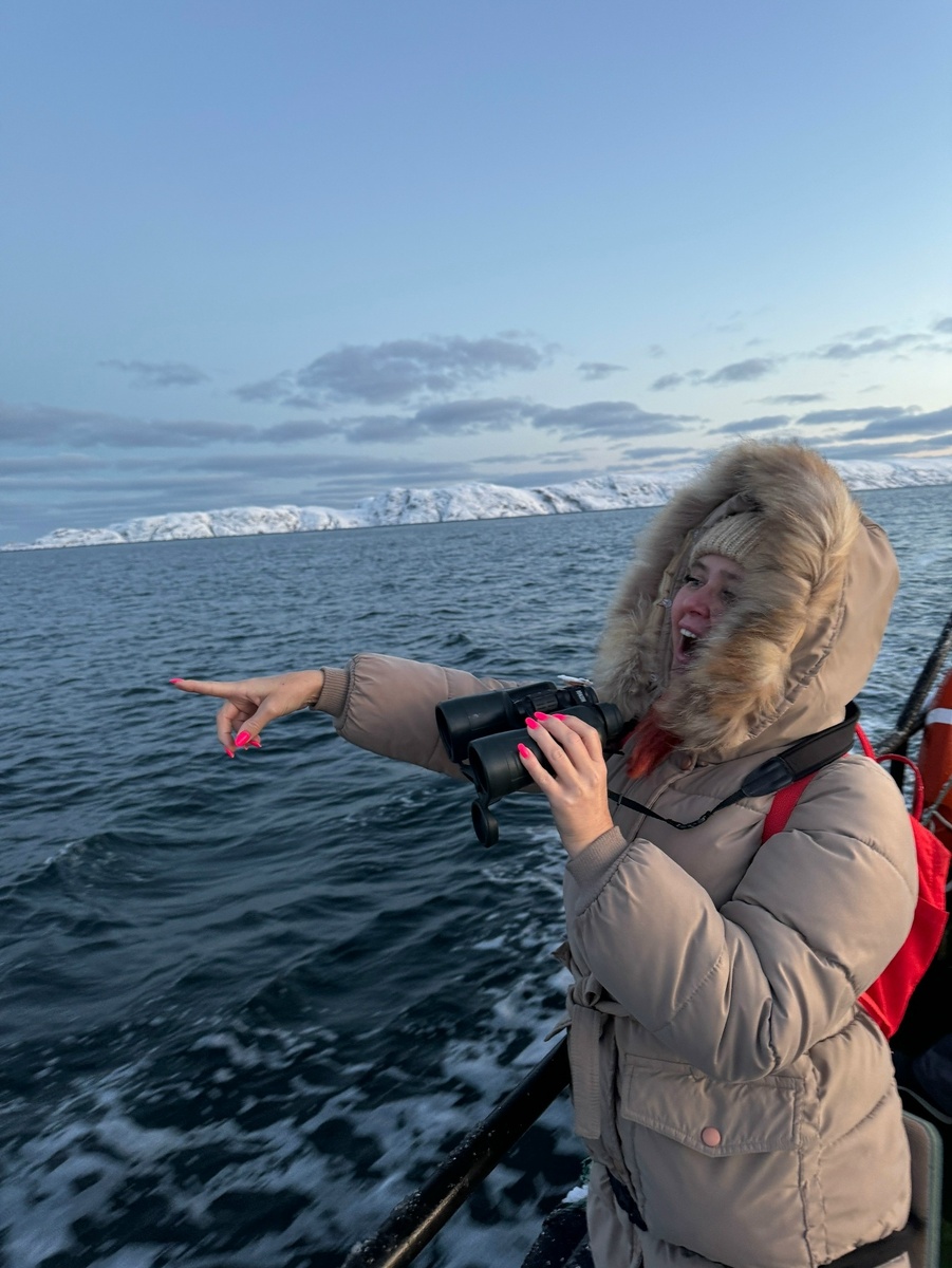 Каждый день в Териберке, насыщен впечатлениями настолько что умещает два дня! Так и в этот раз! Утро началось с водной прогулки в Баренцево море. Туда мы отправились на настоящей рыболовецком катере. Видели любопытного тюленя, морских птиц, к сожалению киты ушли далеко, но виды окружающих скал и знаменитый Териберский маяк не куда не делись. По возвращению стало холодать и над водой, что обычно +4 градусов тепла пошел пар, что придало загадочности и красоты берегам. После мы забрались к маячному знаку, посетили кладбище кораблей, где до сих пор стоят деревянные остовы и листы корпусов старых еще дореволюционных судов, хотя рядом пополнил вечную стоянку уже новый кораблик лежащий на боку.. Дальше была самая милая мимишная часть похода. Мы покормили северных оленей ягелем и погладили хаски. Ни один песик не остался без внимания:) Вечером мы ждали сияния, но небо закрывали облака. Мы уже стали расходиться и часть группы отправилась отдыхать в домики, как постепенно небо стало проясня