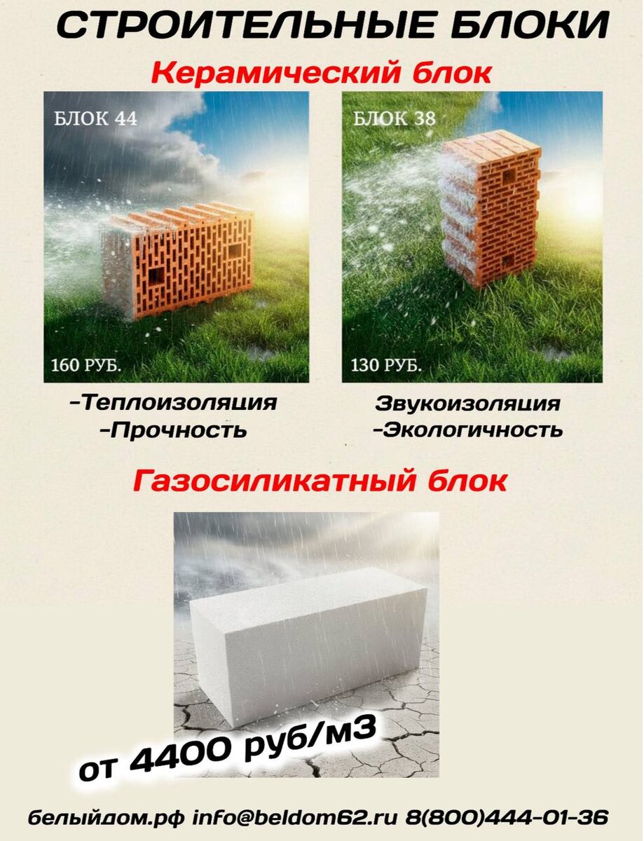 В компании Белый Дом самые низкие цена на Керамические и Газосиликатные блоки в ЦФО. Успейте купить со скидкой и хранить до конца мая бесплатно! Адрес: Г. Рязань ул. Большая д. 100 Г. Рязань рынок Стройка Г. Рязань М-5 Урал 197-й километр 14 Г. Москва Востряковское шоссе д. 7, стр. 6 Г. Тула Карпова 98к2 Свяжитесь с нами уже сегодня, чтобы узнать подробности и оформить заказ. Для связи: +7 (800) 444-01-36 Наш сайт: белыйдом.рф