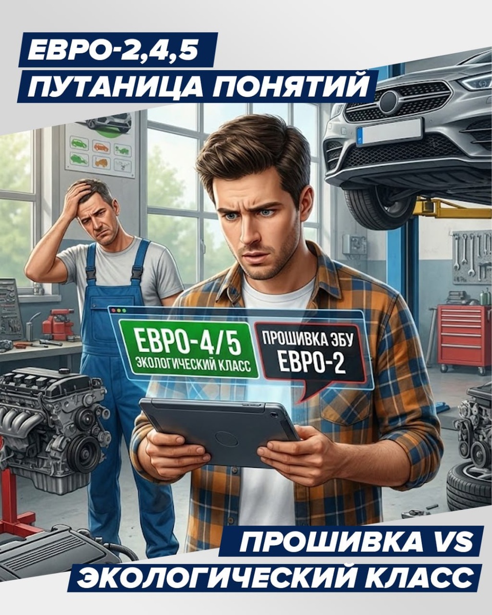 Ключевое отличие: «Экологический класс автомобиля» vs «Прошивка ЭБУ» Здесь часто у автолюбителей происходит путаница. Объясняем: Экологический класс (Евро-4, Евро-5) — это железо и конструкция. Он прописан в ПТС и зависит от того, как машина была сделана на заводе (катализаторы, датчики, система впрыска). Его нельзя изменить программно. Прошивка ЭБУ на стандарт (например, на Евро-2) — это программная настройка «мозгов» автомобиля. Мы меняем софт, чтобы: Отключить проверку второго лямбда-зонда (который стоит после катализатора). Скорректировать топливную карту для правильной работы без катализатора. Убрать ошибку Check Engine и предотвратить переход в аварийный режим. Важно: Прошивка НЕ МЕНЯЕТ экологический класс в ПТС. Она адаптирует электронику автомобиля под физическое изменение выхлопной системы (например, после удаления катализатора).