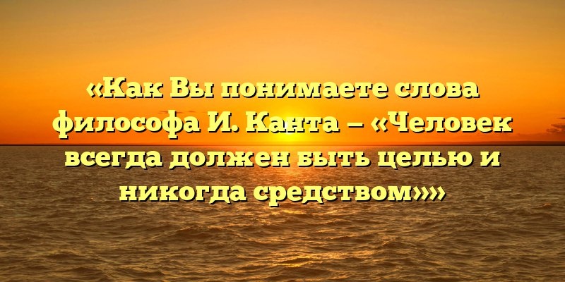 «Как Вы понимаете слова философа И. Канта — «Человек всегда должен быть целью и никогда средством»» 7 лучших сочинений на тему «Как Вы понимаете слова философа И. Канта — «Человек всегда должен быть целью и никогда средством»» Публикуем свежие сочинения 2025 года по теме «Как Вы понимаете слова философа И. Канта — «Человек всегда должен быть целью и никогда средством»». «Как Вы понимаете слова философа И. Канта — «Человек всегда должен быть целью и никогда средством»»: Вариант 1 Я понимаю слова философа И. Канта так: человек всегда должен быть главной целью и не должен использоваться другими людьми как средство для достижения своих целей. Это очень важно, потому что каждый человек имеет собственную ценность и право на собственное счастье. Никто не должен использовать других людей в своих… #Сочинения Подробнее: https://2025.obr.prime-name.ru/literatura/sochineniya/kak-vy-ponimaete-slova-filosofa-i-kanta-chelovek-vsegda-dolzhen-byt-celyu-i-nikogda-sredstvom.html