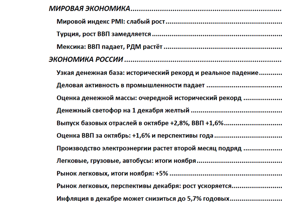 - Выпуск базовых отраслей (ВБО; это около 60% в структуре ВВП) составил в октябре 2,8%. По оценке МЭР, рост ВВП в октябре ускорился до +1,6% (после менее 1% в июле-сентябре). Ускорение роста ВВП в октябре говорит о том, что рост ВВП в 4 квартале и за год в целом может быть выше 1%.