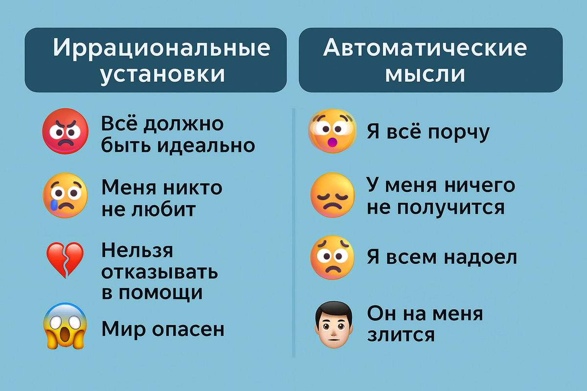 🧩 Вместе иррациональные установки и автоматические мысли: