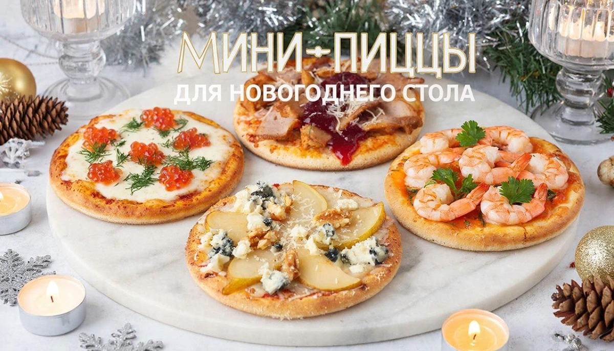 Новогодние праздники — время для кулинарных экспериментов. Мини‑пиццы станут эффектной закуской: они удобны в подаче, позволяют играть с сочетаниями вкусов и точно не оставят гостей равнодушными. Предлагаем четыре оригинальных рецепта в праздничном стиле — от роскошной версии с икрой до утончённого дуэта груши с горгонзолой.