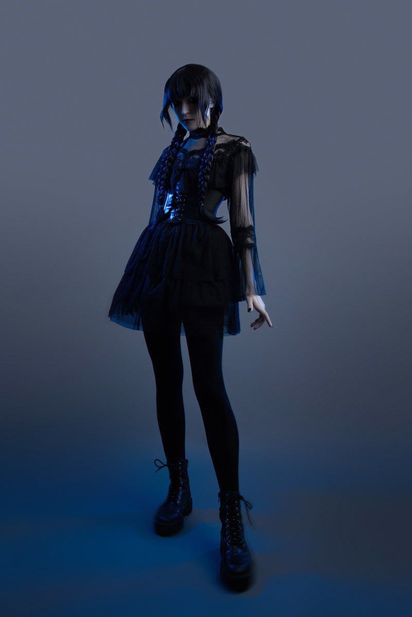 Мрачная харизма, ледяной взгляд и безупречный готический стиль — в этом косплее Уэнздей Аддамс оживает во всей своей узнаваемой строгости. Чёрное платье с кружевными деталями, фирменные косы и сдержанный макияж точно передают характер героини, которая предпочитает острый ум и сарказм пустым улыбкам. Образ подчёркивает внутреннюю силу Уэнздей — независимость, холодную рассудительность и ту самую загадочность, которая сделала персонажа культовым для поклонников сериала Wednesday и вселенной Аддамс. Фэндом: Уэнздей