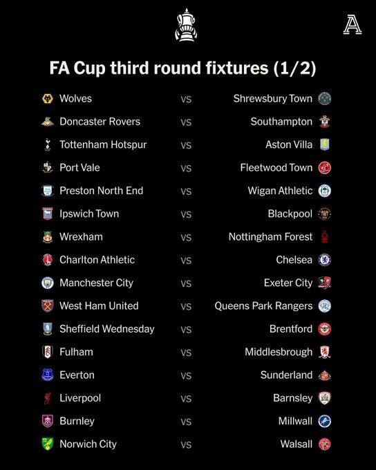 Жеребьевка 3-го раунда Кубка Англии. В борьбу вступают клубы Премьер-Лиги 🏆