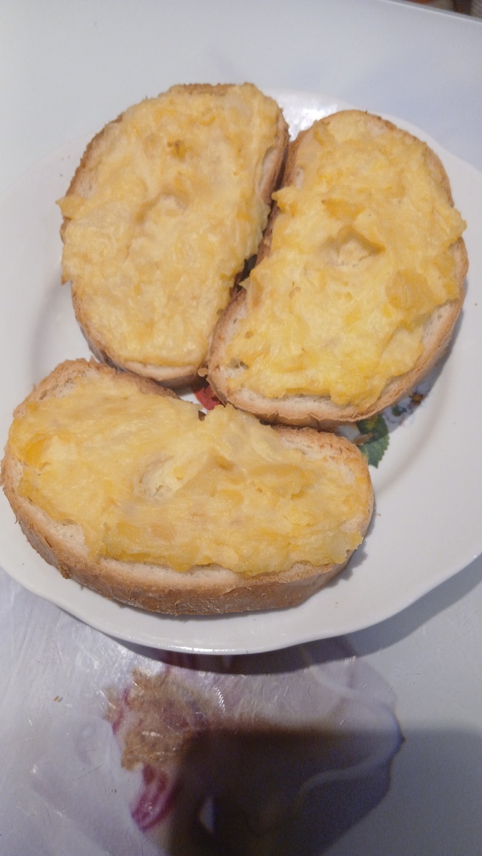 ДЛЯ этих бутербродов нам понядобится батон, и картофельное пюре (надеюсь тут без рецепта, делать его все умеют) варим картошку, делаем пюре (по своему вкусу). На батон намазываем пюрешку и в ставим в духовку на 15-20минут. Приятного аппетита!