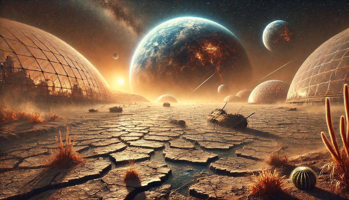 С их исчезновением: гибнут рыбы исчезают птицы умирают морские млекопитающие Пищевые цепочки разрываются за месяцы. 🧪 4. Люди выживут? Только под куполами Чтобы существовать, понадобятся: герметичные купольные города переработка мочи (как на МКС) подземные ледовые хранилища Планета станет настолько враждебной, что выживет лишь 5–1