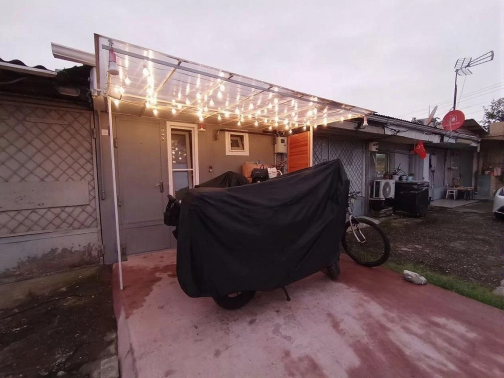 Когда мы проходим мимо гаражных кооперативов, то обычно стараемся ускорить шаг, ведь эти места кажутся нам мрачными и неуютными. Нам представляется, что за ржавыми воротами хранится только старый хлам, зимняя резина и банки с соленьями. Но я побывал в гостях у одной молодой семьи и своими глазами увидел, как серый бетонный бокс превратился в студию, которой позавидуют многие владельцы квартир. Фасад с гирляндой и байк под чехлом Снаружи этот гараж сразу выделяется на фоне соседних унылых построек, хотя и старается не привлекать лишнего внимания. Над входом хозяева соорудили капитальный навес из поликарбоната, под которым по вечерам загораются уютные ретро-гирлянды с теплым светом. Площадка перед воротами аккуратно выкрашена в красноватый цвет, а рядом припаркован велосипед и мотоцикл, заботливо укрытый черным чехлом. Уже по одному внешнему виду понятно, что здесь не просто хранят картошку, а живут активные и современные люди. Белый глянец и зеленое бархатное кресло Стоит открыть две