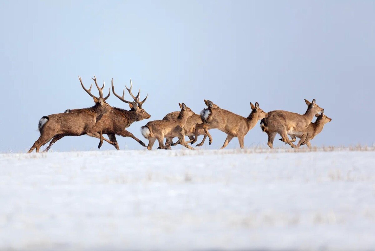 Зимой Природный Парк «Олений» преображается, погружаясь в особую атмосферу тишины и первозданной красоты. Несмотря на холода, жизнь здесь продолжается, лишь меняя свои привычные формы. Животные поразному приспосабливаются к суровому сезону. Олени, косули и лани ведут такой же активный образ жизни, как и осенью . Их шерсть становится гуще, надёжно защищая от мороза и ветра. В поисках пропитания они переходят на кору, побеги и сухие травы, выкапывая их изпод снега. Если снега выпадает слишком много, животные перемещаются в менее заснеженные места или к точкам подкормки. Пернатые обитатели, оставшиеся на зимовку, проявляют заметную активность. Синицы с яркими грудками, поползни, ловко снующие по стволам, и дятлы, простукивающие кору в поисках личинок, заняты непрестанным поиском еды. Чтобы сохранить тепло, птицы распушают перья, создавая воздушную прослойку, и часто сбиваются в стаи. Некоторые постепенно приближаются к людским поселениям в надежде найти подкормку. Другую стратегию выбра