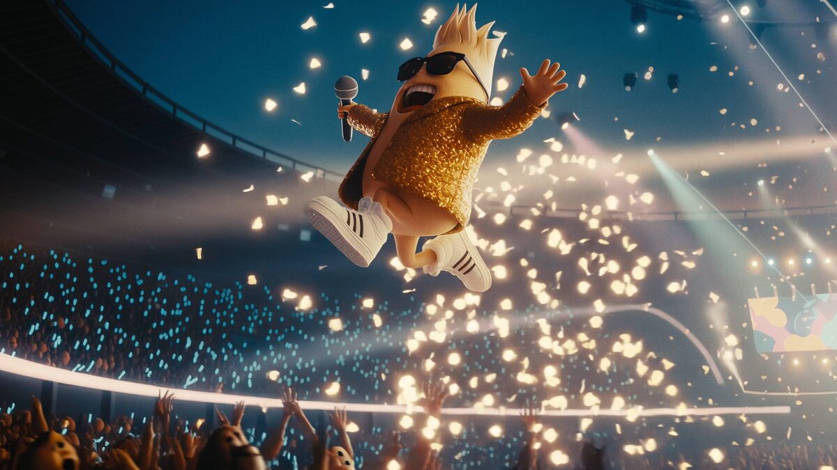 А ю рэди?! Как же я кайфую, когда мы пилим музыкальную рекламу. У нас, кстати, в команде реально много профиков по музыке: кто-то в звуке, кто-то сам играет и пишет, кто-то тащит по рифмам и текстам. Тут всё прям сошлось. Вы прикиньте, как может звучать трек с вокалом, сделанный с помощью ИИ. Но это вообще не история про «нажал одну кнопку и готово». После кучи несостоявшихся промтов я психанул: сначала придумал в голове мелодию, напел её в диктофон, потом взял текст песни, который написал Димка, и все это загрузил в нейронку, а после собрал большой подробный промт — где какое место: вступление, проигрыш, кульминация, бридж и т.д. Плюс расписал стиль, инструменты, характер и тональность вокала. И вот после примерно 50 итераций появилось то самое чудо. Конечно, потом мы ещё руками всё докрутили — и получилось то, что вы слышите. Когда трек сложился, мы поняли, что по визуалу надо делать концерт бойзбенда из пяти злаков — как раз той самой основы рецепта каши, которую мы рекламируем.