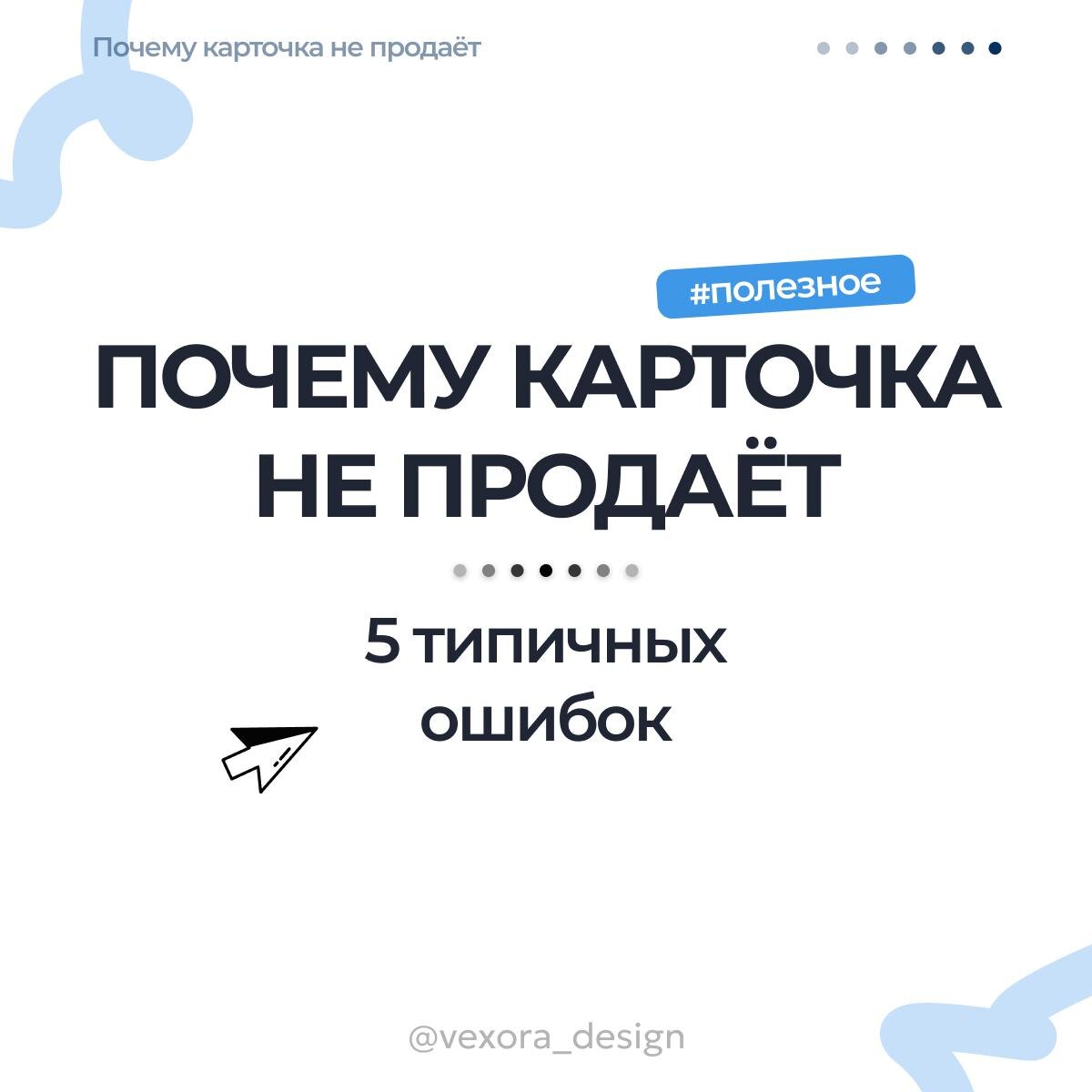 👌 Подготовила для вас полезный разбор - 5 типичных ошибок, которые мешают карточкам работать на результат 🫠 ⠀ 📱 Более 90% заказов оформляют с телефона, а значит: - мелкие и декоративные шрифты для важного текста = минус внимание - некачественные фото = минус доверие - «высокое качество» без конкретики = минус интерес ⠀ А ещё классика жанра - воронку продаж не продумали, или её сделал чат GРТ (да, мы это видим 😅) ⠀ Главный вывод: карточка должна не просто «нравиться», а вести покупателя к действию 🙌 Кликабельные ссылки: ▪️ Коммерческое предложение ▪️ Отзывы клиентов: @vexora_feedback ▪️ Прайс Для заказа: @vexora_manager