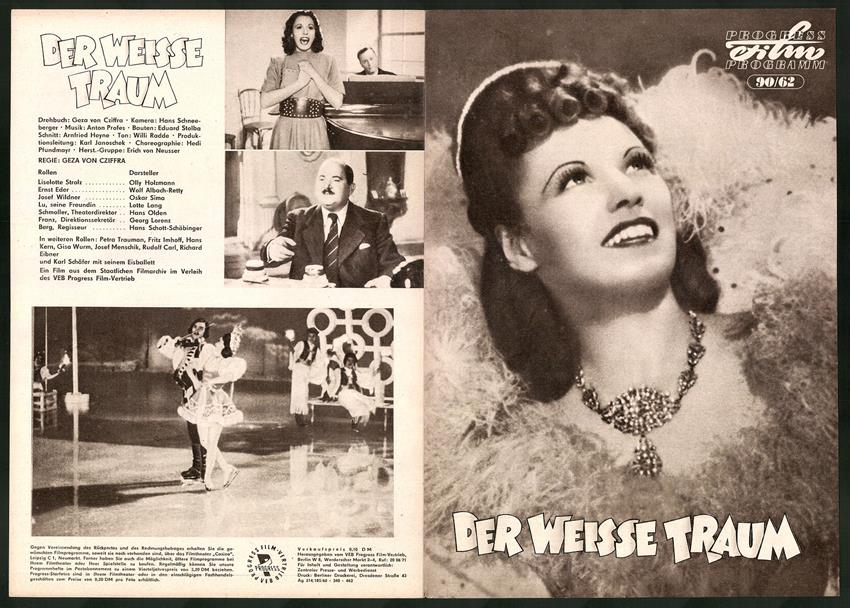 Снежная фантазия / Белая фантазия / Der weiße Traum. Германия-Австрия, 1943. Режиссер и сценарист Геза фон Шифра. Актеры: Вольф Альбах-Ретти, Оскар Сима, Лотте Ланг и др. Прокат в СССР с 1949: 9,5 млн. зрителей за первый год демонстрации.