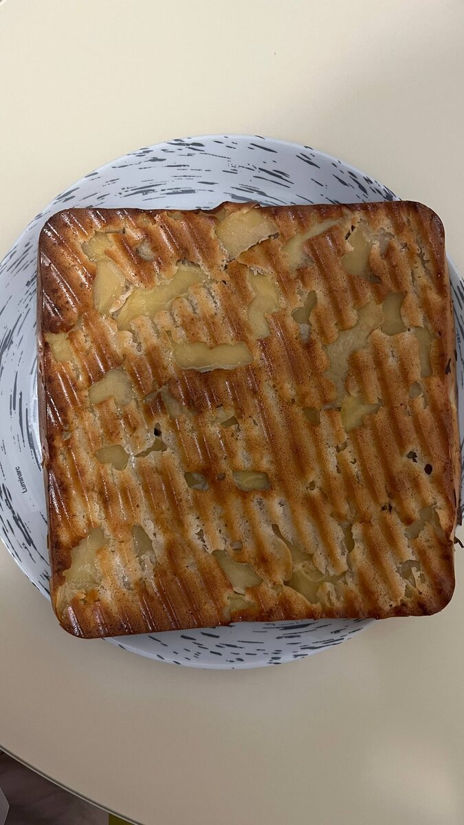 ПП шарлотка Ингредиенты: Яблоки 2 шт. Яйца 2 шт. Овсяная мука 60 гр Йогурт 50 гр Сахар 1 ст.л. (или заменитель сахара) Разрыхлитель 1 ч.л. Корица Приготовление: Яйца взбить с сахаром, добавить остальные ингредиенты, перемешать. Яблоки нарезать, выложить в смазанную маслом форму. Залить тестом. Выпекать при 180° 30-40 минут. Я яйца не взбила (так было написано в рецепте🤷🏻♀️) и у меня получился плоский пирог😕 #десерт