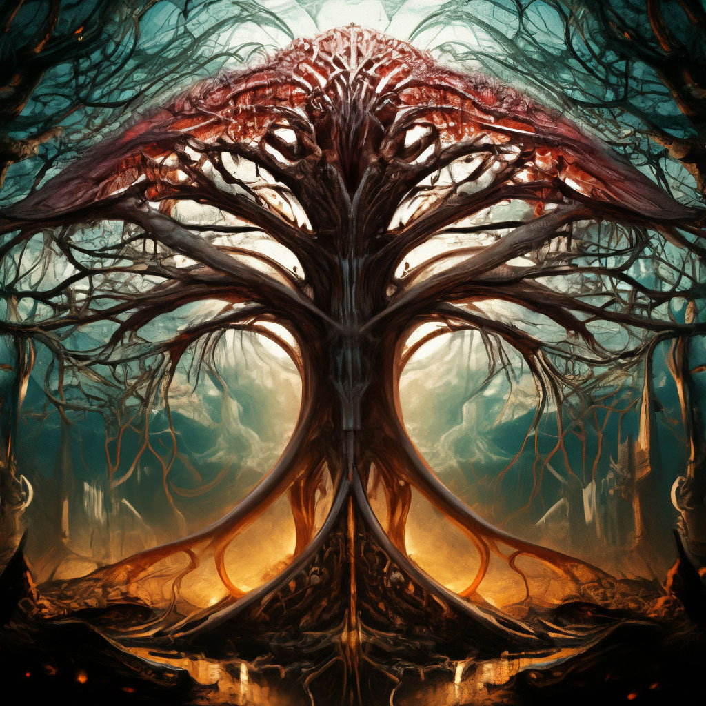 Мир был создан не одним актом. Он родился из отсутствия — из цимцум, когда Творец отступил, чтобы оставить место для тварного. Но в этой пустоте остался след — не свет, а его отражение, искажённое, не вмещённое сосудами. Из этого следа и выросло Древо Клипот — теневая сторона Древа Сфирот. Оно не противостоит свету. Оно идёт рядом. Как тень за шагом. Как дыхание в темноте. Как память о падении, что живёт в каждом существе. Его корни — в бездне, где нет ни времени, ни формы. Его ветви — в семи уровнях, что пронзают реальность, как когти. Оно не говорит. Оно шепчет — в молчании, в сне, в слове, сказанном слишком поздно. Оно не правит. Оно присутствует — в каждом выборе, где желание сильнее долга, в каждом вздохе отчаяния, в каждой слезе, что не была пролита. А в самом сердце этого Древа — Нахемот. Не город. Не крепость. Состояние. Место, где скорбь становится законом, а тишина — единственным языком. Здесь нет солнца. Есть только свечение корней, тусклое, как пепел, в котором ещё теплитс