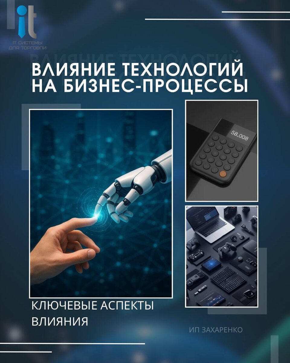 Современные технологии радикально меняют подходы к ведению бизнеса и оптимизации процессов. Внедрение цифровых решений помогает компаниям повысить эффективность, гибкость и конкурентоспособность. - Автоматизация процессов Системы автоматизации (ERP, CRM, RPA) сокращают время и ошибки в рутинных операциях, освобождая ресурсы для стратегических задач. - Улучшение коммуникации Цифровые платформы обеспечивают мгновенный обмен информацией между отделами и с клиентами, что ускоряет принятие решений и улучшает сервис. - Аналитика и принятие решений Большие данные и ИИ позволяют глубже понимать рынок и поведение клиентов, что способствует точному таргетингу и оптимизации бизнес-моделей. - Гибкость и масштабируемость Облачные технологии дают возможность быстро адаптироваться к изменениям и масштабировать бизнес без существенных затрат на инфраструктуру. Вывод Технологии трансформируют бизнес-процессы, делая их более прозрачными, эффективными и ориентированными на результат. Компании,