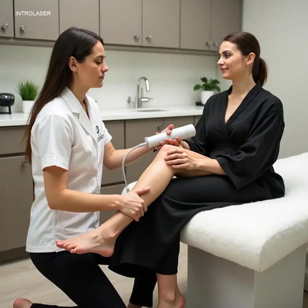 • Технические действия: Настройка параметров лазера, подготовка кожи клиента