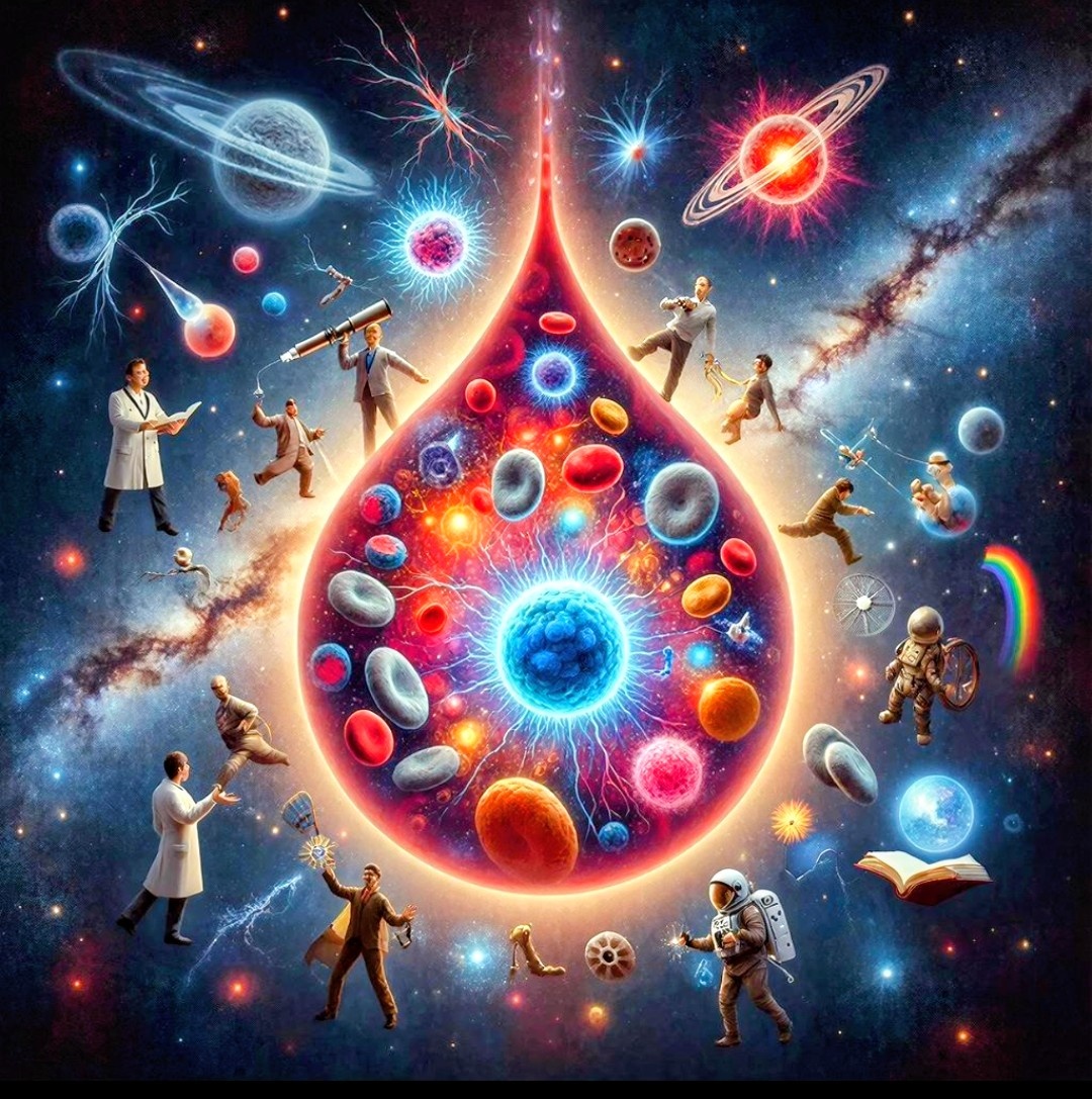Представь: Вселенная — это гигантское живое тело, а мы с тобой — его клетки. Как эритроциты, нейроны или иммунные бойцы. У каждой клетки своя роль, но все мы связаны одной энергией — энергией любви.