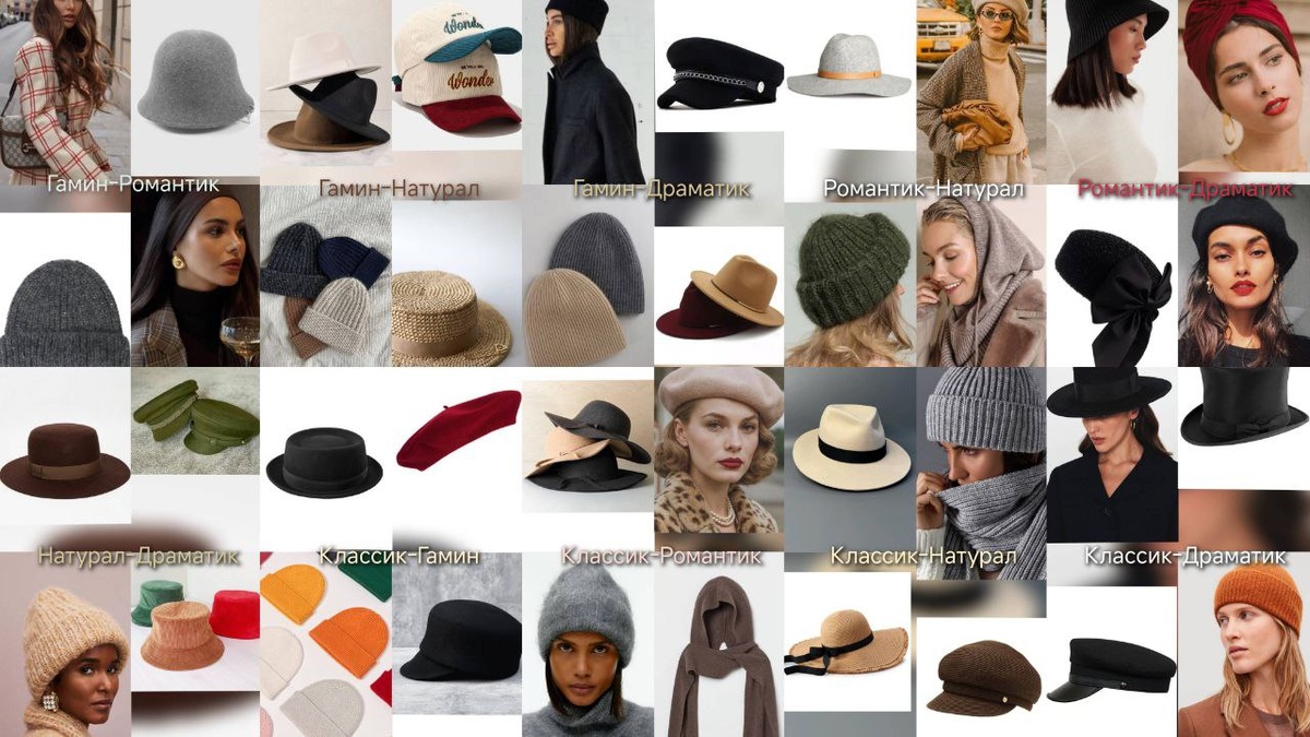 Выбор головного убора — тонкое искусство, которое может как подчеркнуть вашу индивидуальность, так и нарушить гармонию образа. Сегодня разберём, какие модели идеально подойдут каждому из смешанных типажей по системе Двин Ларсон. Принципы подбора Прежде чем перейти к конкретным рекомендациям, напомню ключевые правила: масштаб — размер шляпы должен соответствовать масштабу лица и фигуры; линии — мягкие или резкие, плавные или угловатые формы убора должны перекликаться с природными линиями внешности; детали — объём, декор, фактура должны гармонировать с текстурой волос и чертами лица. Головные уборы по типажам Гамин‑Романтик Характерные черты: миниатюрность + нежные, округлые линии. Подходящие модели: миниатюрные береты с мягкой посадкой; шляпки‑клош с узкими полями; вязаные шапочки с лёгким объёмом и деликатной фактурой; тонкие повязки и ободки с небольшими декоративными элементами. Чего избегать: массивных уборов, широких полей, грубых фактур — они перекроют хрупкость образа. Гамин‑На