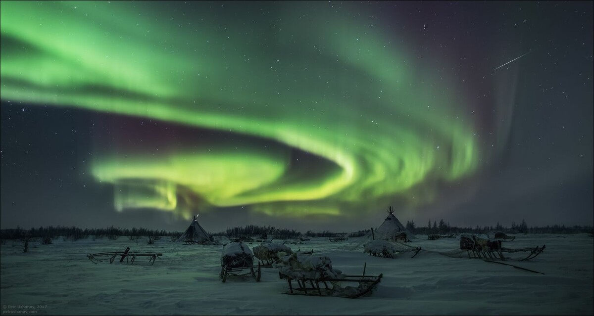 Северное сияние — одно из самых удивительных природных явлений, которое ежегодно привлекает тысячи туристов со всего мира. Особенно впечатляет оно на полуострове Ямал, где небо оживает яркими красками и загадочными узорами. Что такое северное сияние? Северное сияние возникает благодаря взаимодействию заряженных частиц солнечного ветра с магнитным полем Земли. Эти частицы проникают в атмосферу планеты, сталкиваясь с атомами кислорода и азота, вызывая свечение в ночном небе. Цвета северного сияния варьируются от зеленого и розового до фиолетового и синего оттенков. Почему именно Ямал? Ямал — идеальное место для наблюдения северного сияния благодаря своему географическому положению далеко за полярным кругом. Здесь ясные зимние ночи позволяют увидеть всю красоту природного явления практически каждый вечер. Местные жители называют северное сияние «небесным огнем», считая его символом удачи и благополучия. Северное сияние на Ямале — это незабываемый опыт, который оставит неизгладимый след
