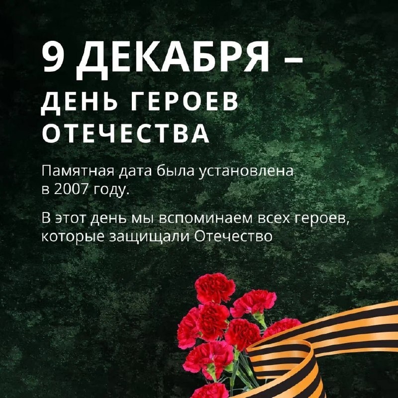 9 декабря, в День Героев Отечества, мы вспоминаем всех, кто стоял на защите нашей Родины, кто посвятил свою жизнь служению Отечеству