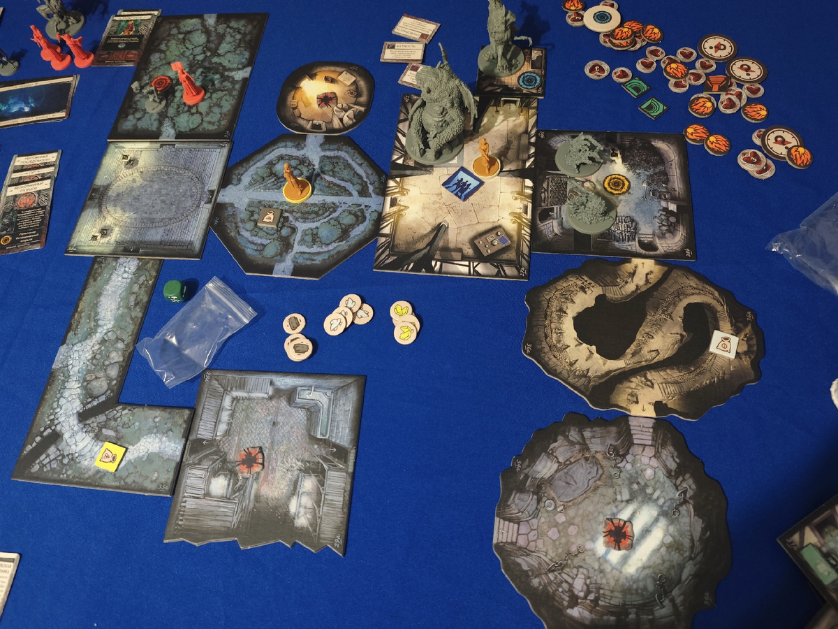 Сыграл вчера в четвертый сценарий Ктулху. Смерть Может Умереть - Страх неведомого. Отважные Агата и Стелла оказались в полумифическом доме Влада Цепеша. Королева Румынии потратила полжизни на восстановление этого замка, но проклятые культисты захватили его, чтобы провести в нем свой ритуал. На поле находятся источника с различными ингредиентами. Сыщикам необходимо взорвать три локации, а для этого нужно принести три разных ингредиента. Взрывать можно из соседних локаций. По правде говоря, играл сценарий я дважды. Первый раз я проиграл на четвертый ход. телла нашла рюкзак, который позволяет ей носить по 2 жетона каждого ингредиента. Она решила набрать сразу много, но тут внезапно вышла карта мифа, которая наносит по 1 усталости за каждый ингредиент. Мягко говоря, не повезло Стелле. Второй раз я был более осмотрительным и ждал эту карту. Агата пару раз чуть не отъехала от монстров. У нее оставалась одна жизнь, но к счастью мифы были не так жестоки. В результате мне удалось взорва