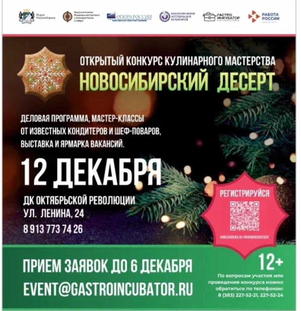 ▎🎂 КОНКУРС КУЛИНАРНОГО МАСТЕРСТВА «НОВОСИБИРСКИЙ ДЕСЕРТ» 🎂 ▎Приглашаем вас на самый сладкий праздник года! 12 декабря город Новосибирск станет столицей кондитерского искусства! --- ▎📅 ДАТА И МЕСТО Дата: 12 декабря Время: 10:00–21:00 Место: г. Новосибирск, ул. Ленина, 24 Подробности в телеграмм канале https://t.me/novosibirskdisert ▎🏆 ЧТО ВАС ЖДЁТ? ▎Захватывающие соревнования (11:00–17:00) Лучшие кондитеры города будут состязаться в номинациях: • 🎂 Свадебный торт / Торт • 🧁 Пирожное / Уникальный десерт • 🥧 Пирог / Пряник • 🌸 Сладкая флористика ▎Деловая программа (11:00–17:00) • 👨🏫 Мастер-классы от звёзд кондитерского мира • 💡 Экспертные выступления по актуальным вопросам развития бизнеса • 📊 Ярмарка вакансий (10:00–12:00) ▎Торжественное награждение (18:30–20:00) Чествование победителей во всех номинациях и лауреатов народного голосования! --- ▎✨ ОСОБЕННОСТИ СОБЫТИЯ ✅ Выставка партнёров и участников конкурса ✅ Кофе-брейк и нетворкинг ✅ Выступления творческих