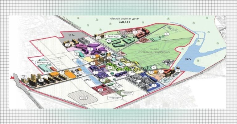 Застройку опытных полей Тимирязевской академии обсуждают уже не первый год. Сама идея вызывает споры: руководство вуза и инвесторы думают о том, чтобы построить на части земли новые корпуса и квартиры, чтобы получить деньги на обновление старых зданий. Студенты, преподаватели и местные жители боятся, что это разрушит сады, поля и лаборатории, где учат и проводят исследования, и станет первым шагом к застройке всей зеленой территории. А часть земли охраняется законом и имеет историческое значение. «Тимирязевские наблюдатели нашли новую схему развития территорий ТСХА имени К. А. Тимирязева и обеспокоены судьбой опытных полей», — пишет канал «САО Москвы», опубликовавший план. На схеме обозначено, что проект называется «Агрокампус». Судя по нему, вуз всерьез задумывается о масштабном университетском строительстве, как Бауманка или РУТ. План предполагает, что вместо разрозненных корпусов и больших полей появится единый учебный центр с кластерами по направлениям ветеринария, агробиотехнологи