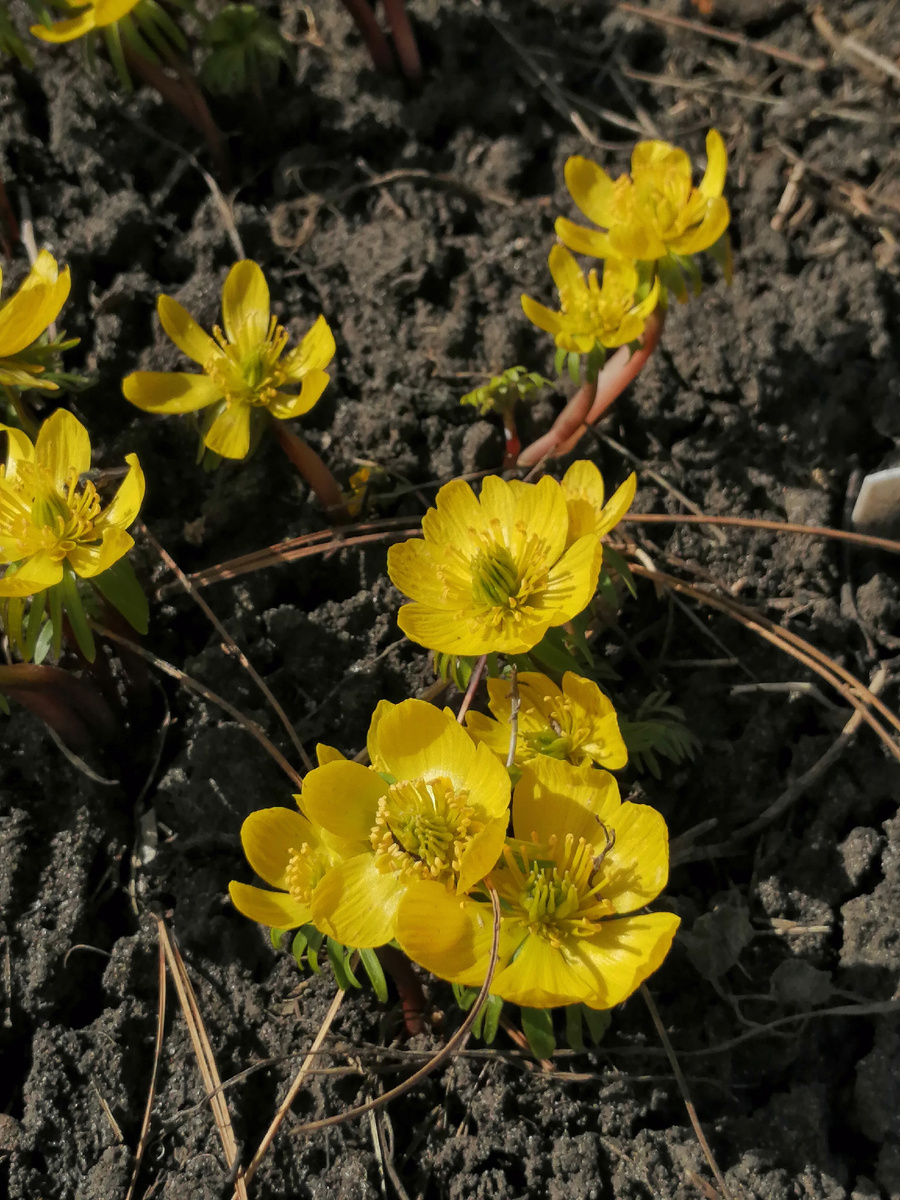 мое весеннее настроение) Так-то я желтый цвет в цветниках не особо приветствую. Только нынче решила сделать летний цветник с его вкраплениями. И то там желтые не цветки, а листва. Ну и продолжение рабатки из трех желто-оранжевых роз тоже постепенно становится более-менее желтым. Но весна - дело совершенно особое. Весной я готова буквально на все - и на желтое, и на оранжевое и вообще на любое вырвиглазное. И весеннего желтого у меня постепенно скопилось. Например, эрантис зимний. Начало апреля, а он уже радует: Правда, я пока совершенно не представляю себе, как он будет у меня жить, и будет ли вообще. Очень его хотела, долго гонялась и вот, экспериментирую. Зато леонтица, или голосемянник алтайский - вариант беспроигрышный. Растет, множится, радует. По времени цветения примерно совпадает с эрантисом - начало-середина апреля. Растение, конечно, себе на уме - клубнями не размножается, прирост идет только и исключительно за счет семян. А семена эти моментально теряют всхожесть, да и з