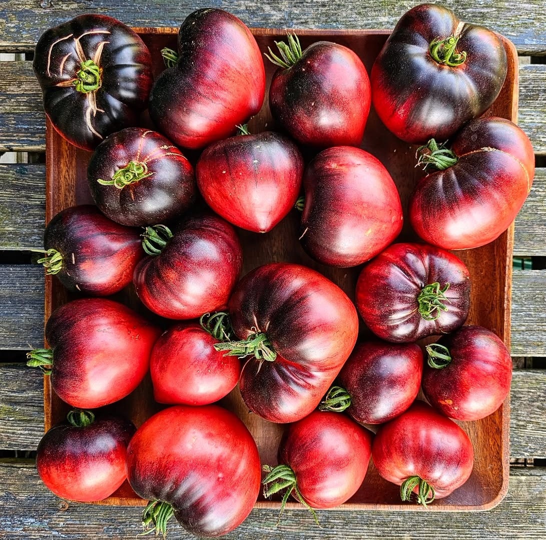 Вы когда-нибудь видели такую прекрасную картину в своем огороде? Название: "Сержант Пепперс" Форма: напоминает бычье сердце, идеально вписывается в эстетику сада и кухни. Цвет: глубокое тёмно-синее пятно на верхушке плода плавно переходит в яркий красный оттенок, будто солнечные лучи нежно целуют поверхность каждого овоща. Но красота - лишь половина успеха. "Сержант Пепперс" славится своим невероятным вкусом, сочетающим насыщенную сладость и идеальный уровень кислоты. Его можно употреблять свежим, добавлять в салаты или готовить соусы - независимо от способа приготовления, впечатление останется незабываемым. Особенно радует способность сохранять качество при переработке. Мясистая структура плодов позволяет легко ферментировать томат, превращая его в полезный продукт, богатый пробиотиками. Выбирая сорт "Сержант Пепперс", вы получаете прекрасный плод, одинаково привлекательный внешне и вкусный внутри. Именно за эти качества этот сорт занял достойное шестое место среди лучших сор