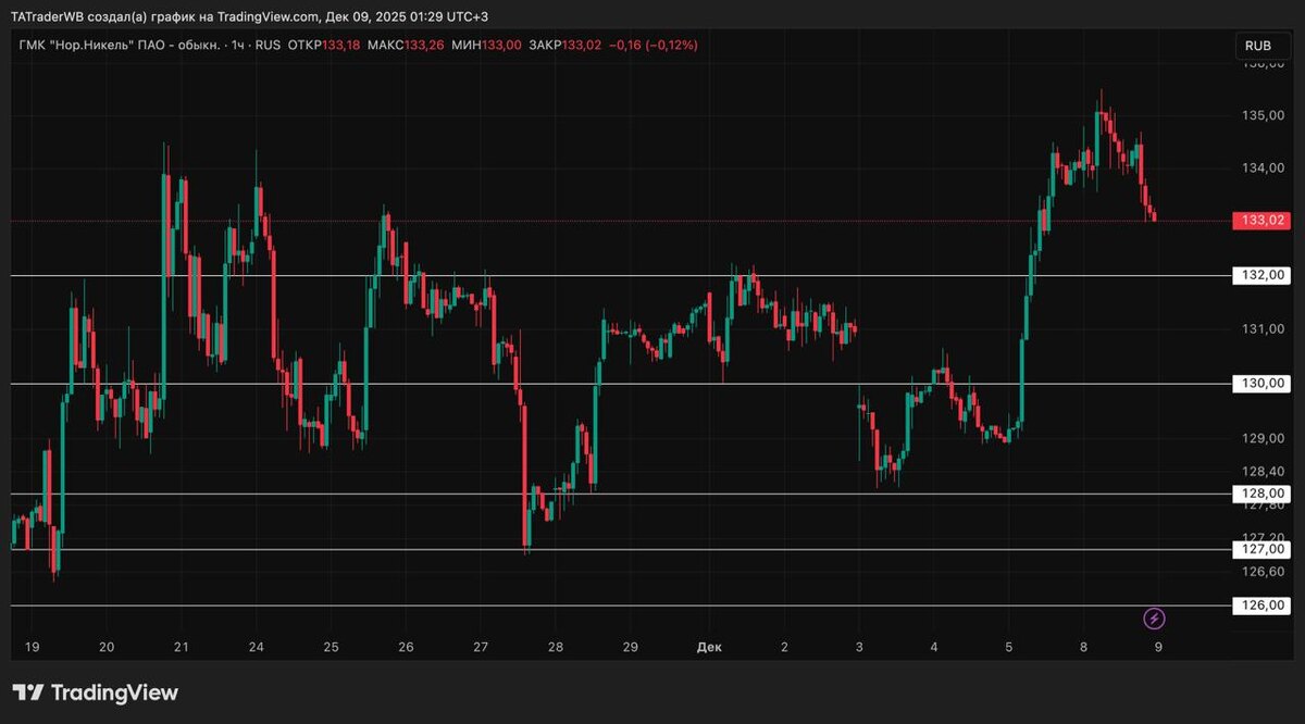 📝 Вчера рынок залили на вечерней сессии, конечно не прям сильно, как надо, но тем не менее. Сегодня бы в приоритете смотрел бы в сторону лонга, если рынок зальют вновь на утренней сессии. Сегодня планирую работать с: $GMKN 🚀 Планирую присмотреть лонг на отскок от 132. (Вход могу взять в диапазоне 132 - 132,3) Тейк +1-1,5%. Стоп поставлю 0,5%, считаю от уровня 132 При достижении +0,5% поставлю стоп в без убыток. Это условие торговли, то есть если будет вход, зайду. Не будет входа, НЕ зайду. НЕ призыв к действию. Больше идей в Базе. ГМК актуален, пока он торгуется НИЖЕ 133,8. Как только ГМК уйдет ВЫШЕ 133,8 - идея не актуальна. Всем прибыльного вторника! 🤝