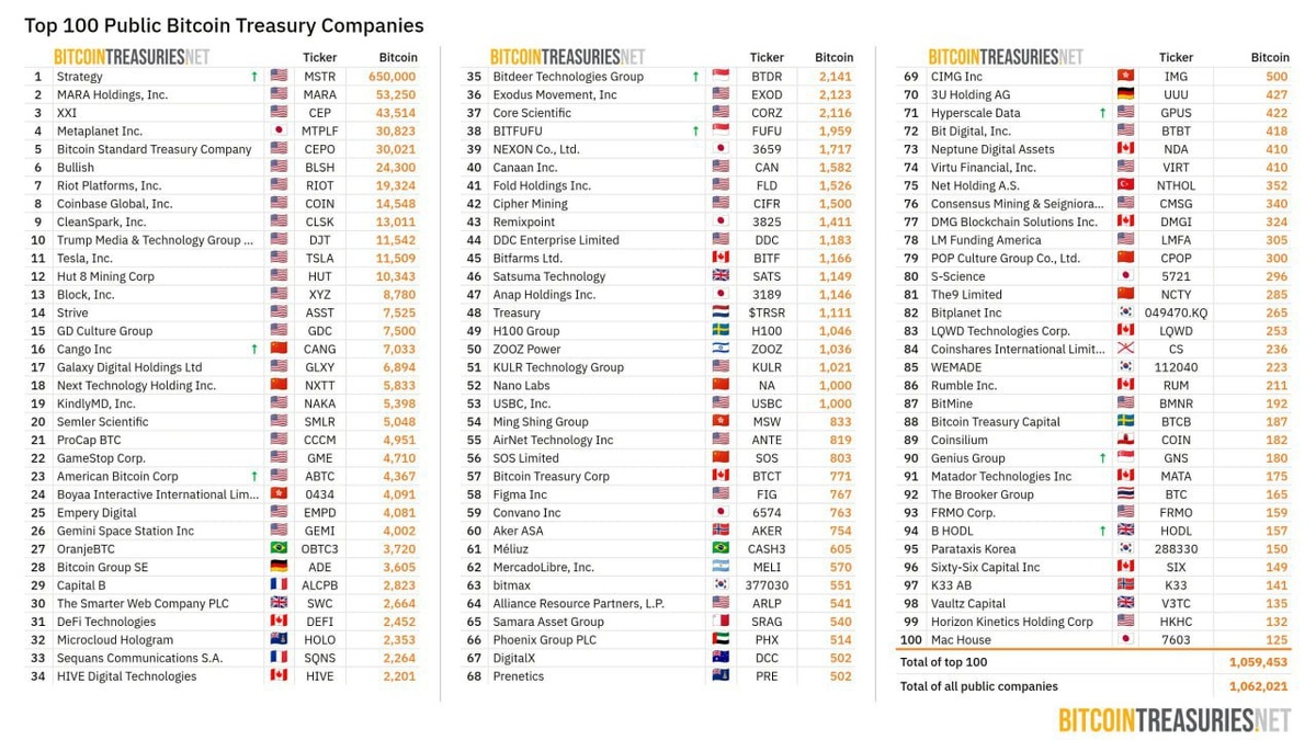 BitcoinTreasures: публичные компании уже держат более 1 060 000 BTC на своих балансах