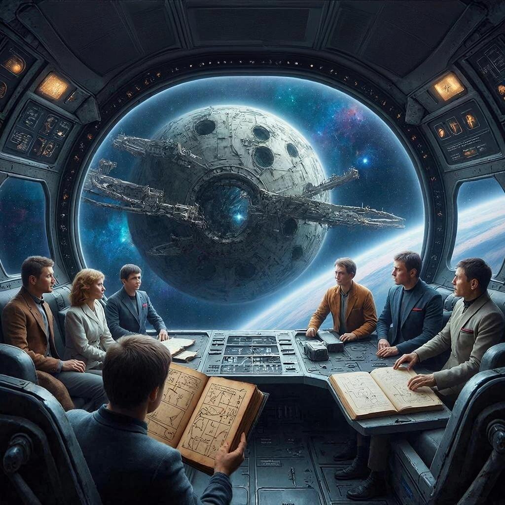 Глава 1. Начало пути В глубинах Вселенной, далеко за пределами нашей Солнечной системы, находился огромный исследовательский корабль «Знание». Его миссия была проста, но крайне важна: сохранить научные знания человечества и передать их будущим поколениям. Команда корабля состояла из лучших ученых Земли. Они были выбраны не только за свою квалификацию, но и за преданность делу науки. Среди них был капитан Алексей Смирнов, физик Мария Иванова, биолог Олег Петров и инженер Анна Сергеева. — Мы готовы к старту, капитан, — доложила Анна, проверяя последний индикатор на панели управления. Алексей кивнул и активировал систему гиперпространственного перемещения. Корабль начал ускоряться, готовясь войти в гиперпрыжок. Глава 2. Гиперпрыжок Гиперпрыжок — это сложный процесс, требующий точной координации всех систем корабля. Малейшая ошибка могла привести к катастрофическим последствиям. Команда работала слаженно, каждый выполнял свою роль безупречно. Но внезапно произошло нечто непред