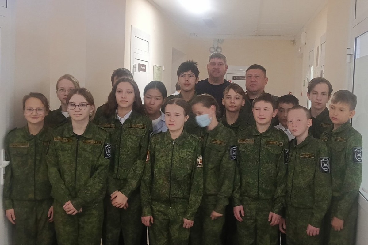 ⚡️В честь дня героев Отечества участник СВО Вячеслав Новокрещенов провёл встречу с учениками казачьего класса из села Карлук
