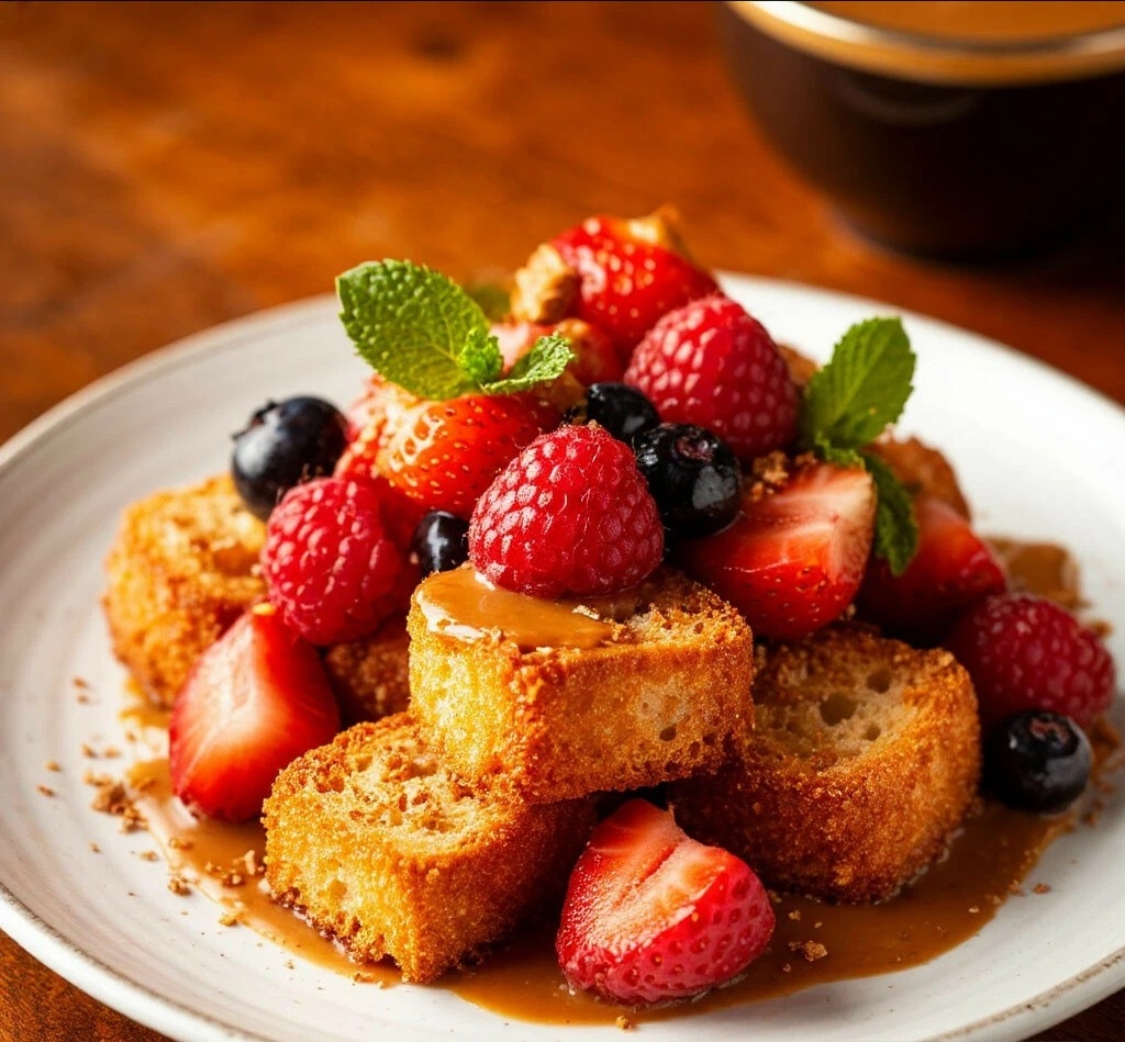 ЗАВТРАК — АРГЕНТИНСКИЕ ГРЕНКИ С ДУЛЬСЕ ДЕ ЛЕЧЕ И ФРУКТАМИ Мяу, мои сладкие соньки! 😺🌅 Просыпайтесь, сегодня нас ждёт Аргентина, а значит, завтрак должен быть по-настоящему праздничным! Эти гренки — не просто хлеб, это хрустящие облака, утопающие в карамельно-молочной дульсе де лече и свежих сочных фруктах! Это объятие для вашего утра! 🍞✨ АРГЕНТИНСКИЕ ГРЕНКИ С ДУЛЬСЕ ДЕ ЛЕЧЕ И ФРУКТАМИ ИНГРЕДИЕНТЫ (на 2 порции): 🧾 ·Хлеб бриошь или багет — 4 толстых ломтика 🍞 ·Варёная сгущёнка (дульсе де лече) — 6 ст. ложек 🥛 ·Сливочное масло — 2 ст. ложки ·Яйцо — 1 шт. 🥚 ·Молоко — 50 мл 🥛 ·Корица — 0.5 ч. ложки ·Банан — 1 шт. 🍌 ·Киви — 1 шт. ·Клубника — 3-4 шт. 🍓 ·Мята — для подачи 🌿 ВРЕМЯ ПРИГОТОВЛЕНИЯ: ⏰ 15 минут СЛОЖНОСТЬ:🐾 Справится любой котёнок ПОШАГОВЫЙ РЕЦЕПТ: 👩🍳 1. В миске взбейте яйцо с молоком и корицей. 🥚🥛 2. Обмакните каждый ломтик хлеба в яичную смесь с двух сторон. 🍞 3. Разогрейте сковороду, растопите сливочное масло. Обжарьте хлеб до золотистой и хрустящей корочки