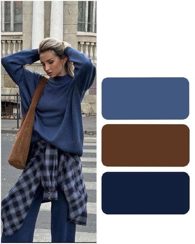 Сочетание синего и коричневого — это классика, создающая гармоничные, спокойные и надежные образы