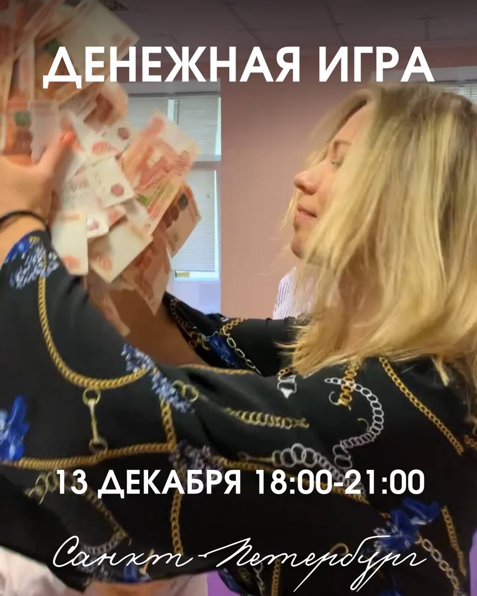 📌 Большая предновогодняя игра — уже в субботу! Середина декабря — прекрасное время для работы с денежной энергией: ✔️Вовсю идёт активная подготовка к Новому году — времени, когда жизнь будто начинается с чистого листа, а значит, прокладывать дорогу в светлое будущее пора уже сейчас ✔️В бесконечной суете хочется хоть ненадолго остановиться, перевести дух и подумать о своих желаниях и планах, ✔️ Хочется ощутить радостное предпраздничное настроение, а заодно и весело провести время в приятной компании Приглашаем вас подготовиться к новому денежному сезону на полевой «Денежной игре»! В увлекательной игровой форме и мощной групповой динамикой мы: 💬 поисследуем свои отношения с деньгами, 💬 увидим точки контакта с денежной энергией 💬 найдем свой путь навстречу деньгам С помощью полевых, телесных и арт-практик вы найдете свой «проход» к деньгам! 📌Ведущая денежной игры — Сергеева Ольга — психолог, телесный и психосоматотерапевт, арт-терапевт, полевой терапевт, преподаватель ИПиПТ ?