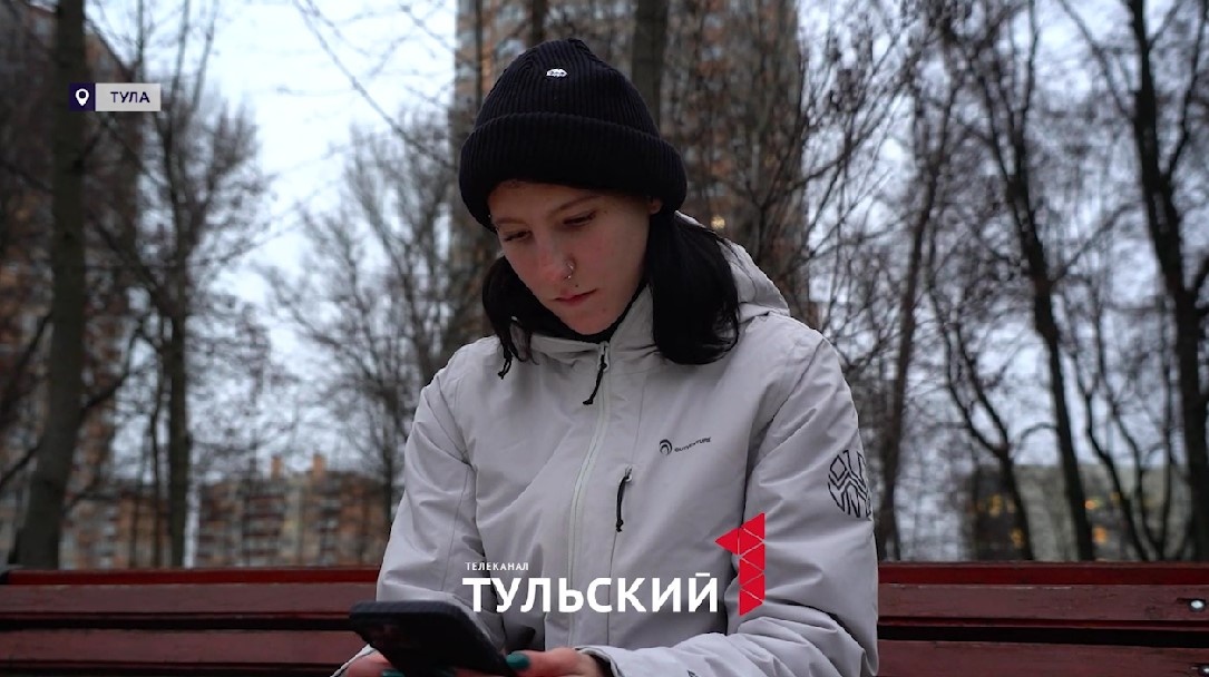 Жительница Тулы с тревогой смотрит в телефон, будто уже не знает, какой ещё неприятности ждать сегодня.