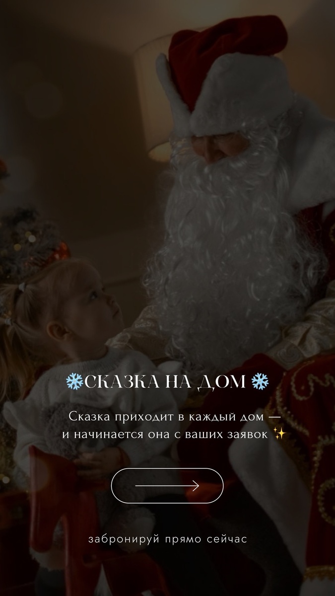 🎄 Открыто бронирование визитов Деда Мороза и Снегурочки с 25 по 31 декабря