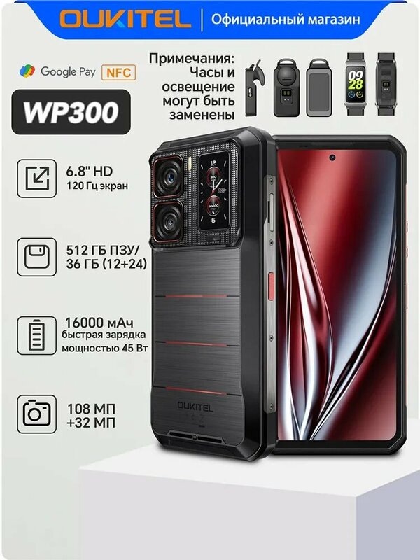 Oukitel WP300 — смартфон, который не боится жизни на улице Нужен телефон, который выдержит дождь, пыль, падение с высоты и при этом не разрядится в самый неподходящий момент? Oukitel WP300 — это надёжный, практичный и выносливый смартфон для тех, кто живёт активно: путешествует, работает на выезде или просто не хочет заботиться о каждый раз о защитном чехле. Почему стоит обратить внимание - Надёжность в экстремальных условиях: усиленный корпус и защита от воды и пыли делают WP300 подходящим для походов, стройплощадки и повседневной суеты. - Долгая автономность: аккумулятор рассчитан на многочасовую работу вне розетки — телефон держит заряд там, где обычный смартфон сдаётся. - Комфорт на улице: яркий экран и удобное управление позволяют использовать устройство на солнце и в перчатках. - Всегда на связи: стабильная связь и точная навигация помогут не потеряться в дороге и оставаться на связи с командой и близкими. - Практичные камеры: фото и видео хороши для документирования поездок,